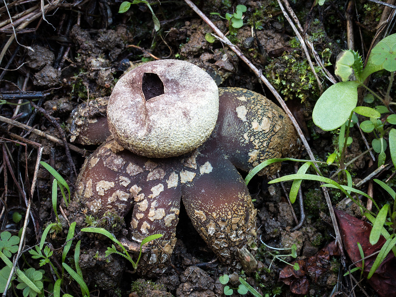 Astraeus hygrometricus appears to be a collection of cryptic species. The true A. hygrometicus may not occur here. More work is needed to determine the correct name(s) for California species.