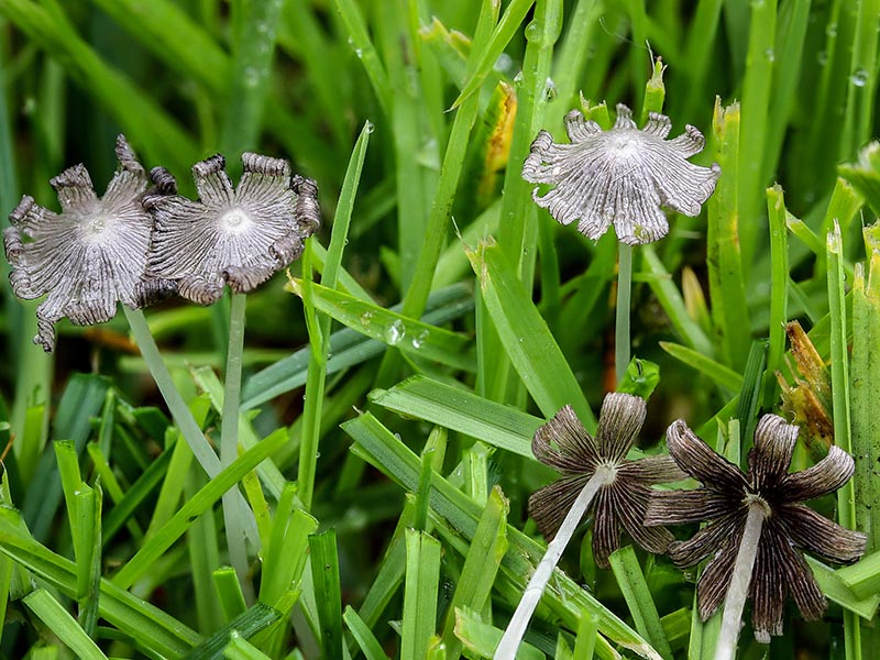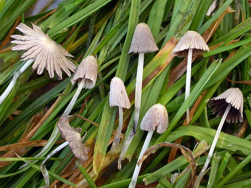 Coprinopsis friesii, is a small, grass-inhabiting mushroom recognized in youth by an obtuse-conic, striate, often radially torn cap. Remnants of a universal veil in the form of pallid flat scales decorate the cap, which in age becomes upturned and slightly deliquescent. Size and an ephemeral fruiting habit explain why this sometimes common mushroom is seldom collected. Fruiting bodies develop at night, shriveling away soon after dawn. Coprinopsis friesii should be compared with Parasola plicatilis and Parasola leiocephala. This species pair differs from Coprinopsis friesii in having larger, non-ornamented, convex caps with intact margins and spores that are heart-shaped to pentagonal in face-view. Other small grass-loving species that occur with Coprinopsis friesii include Panaeolus foenisecii and Agrocybe pediades. The former is a larger, brownish, convex-capped, non-deliquescent mushroom with a decurved, non-revolute margin, while Agrocybe pediades is a small, cream to tan-brown mushroom, the cap convex to plane, and like Panaeolus foenisecii, does not deliquesce.