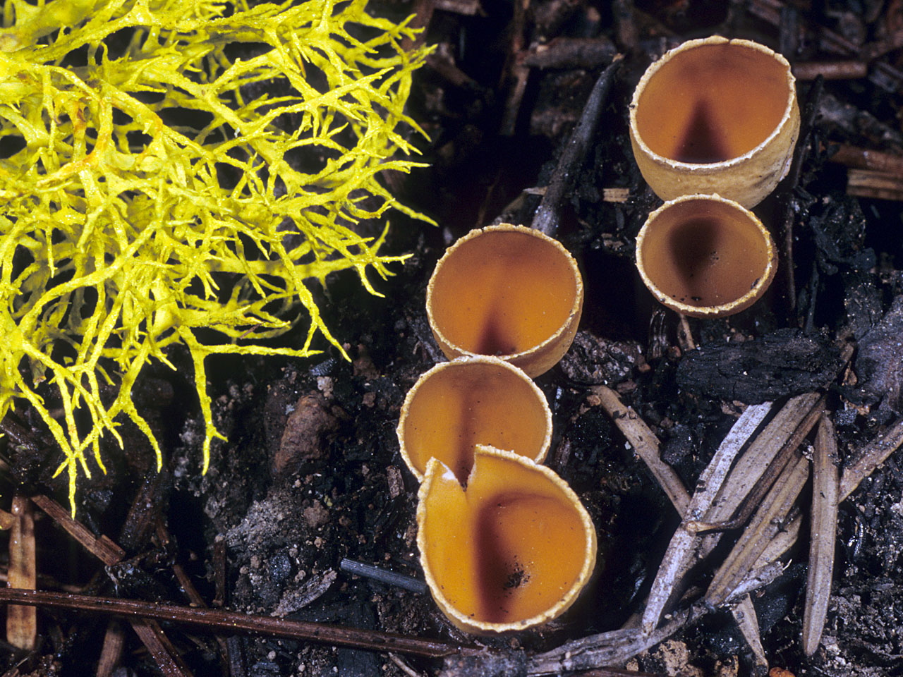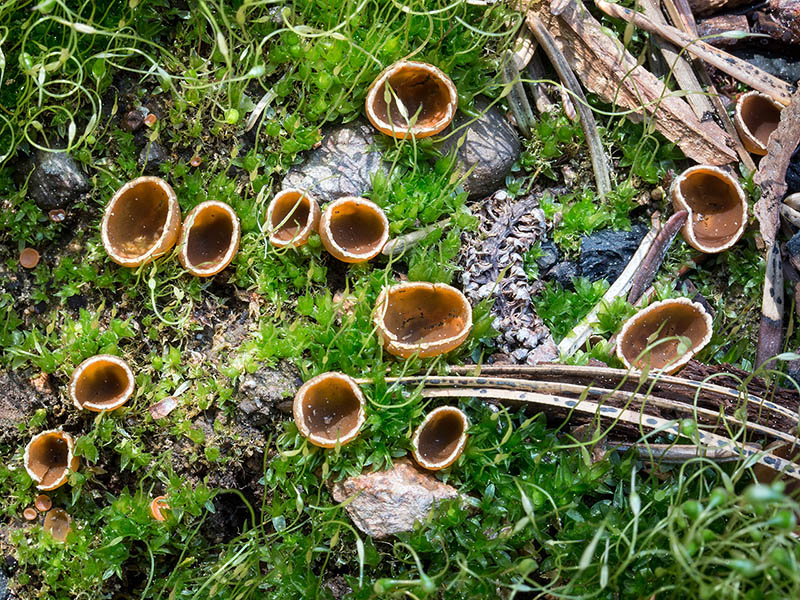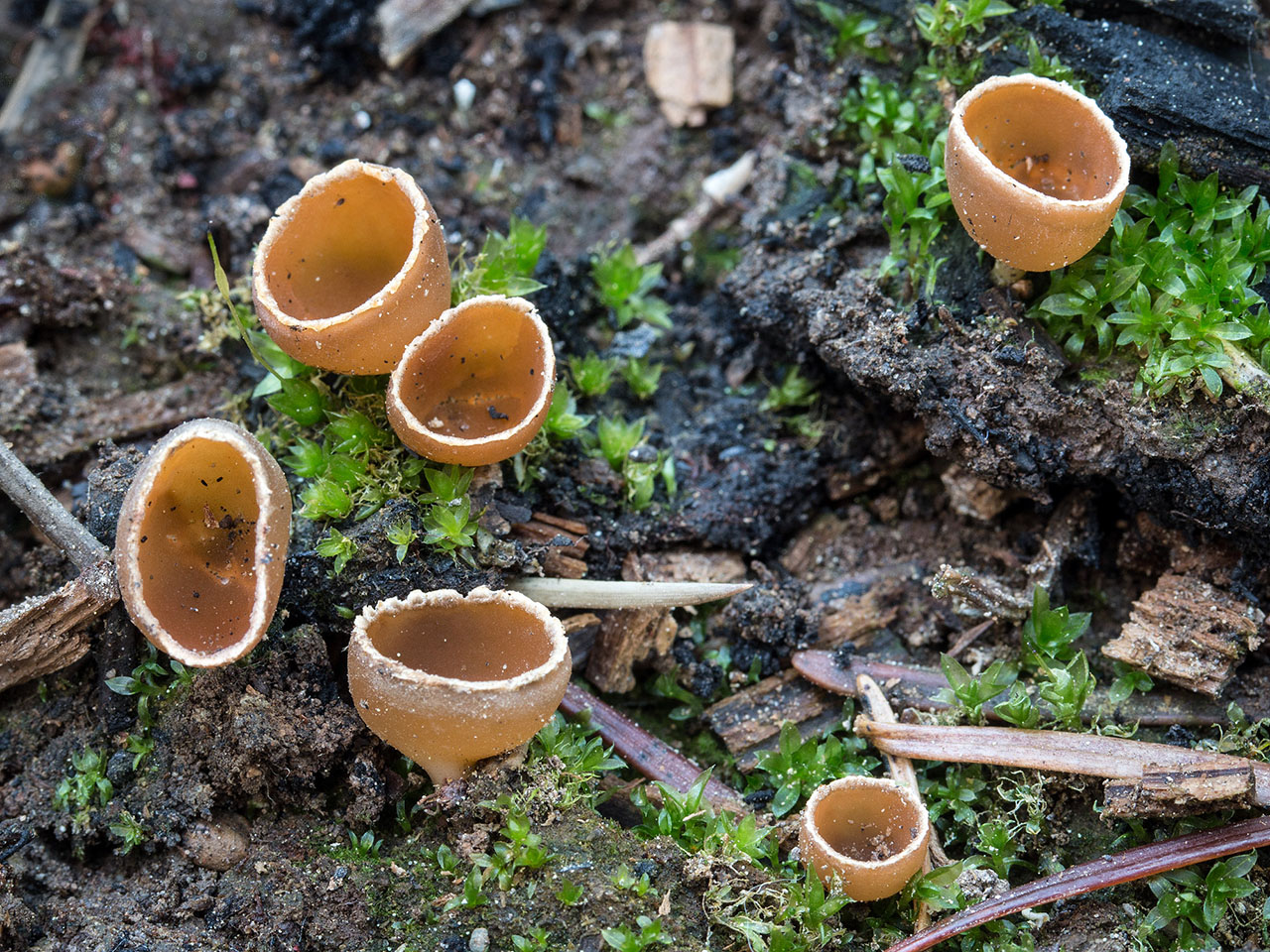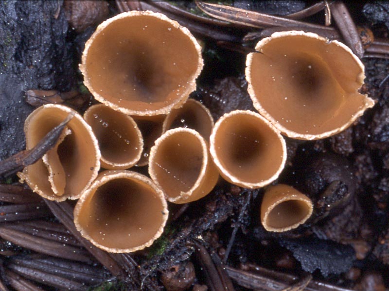 A distinctive goblet shape, crenate cup margin, and habit of growing in burned soil are hallmarks of this attractive Ascomycete. It often fruits in vast numbers along with other fire-associated cup fungi like Pyronema omphalodes, Peziza violacea, P. pratervisa, Anthracobia macrocystis, and Plicaria endocarpoides. Geopyxis vulcanalis was once deemed a distinct species, but is now considered con-specific with Geopyxis carbonaria. What had been erroniously called Geopyxis vulcanalis in California is now properly called Geopyxis deceptiva.