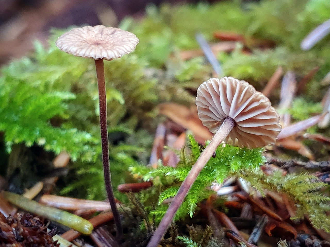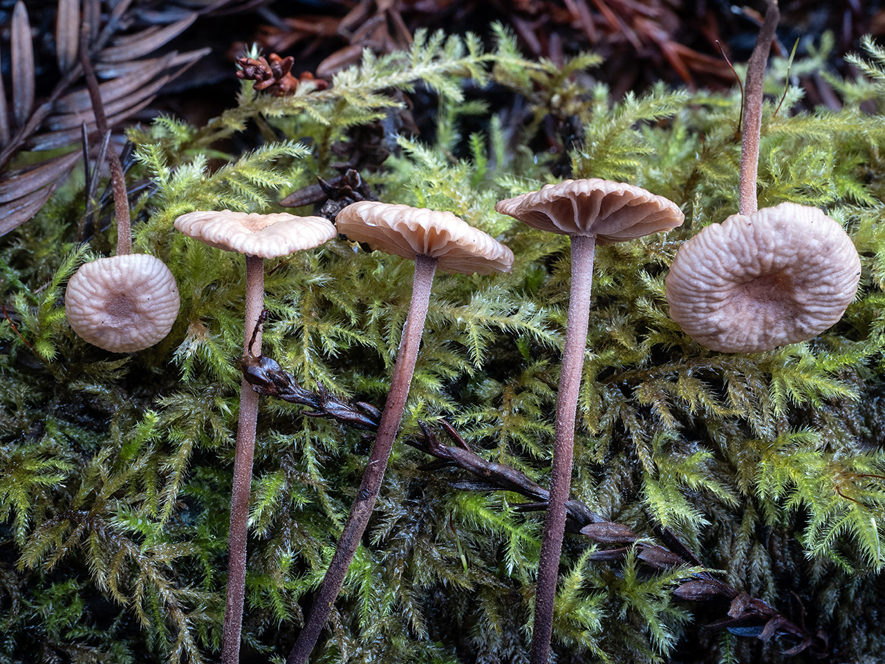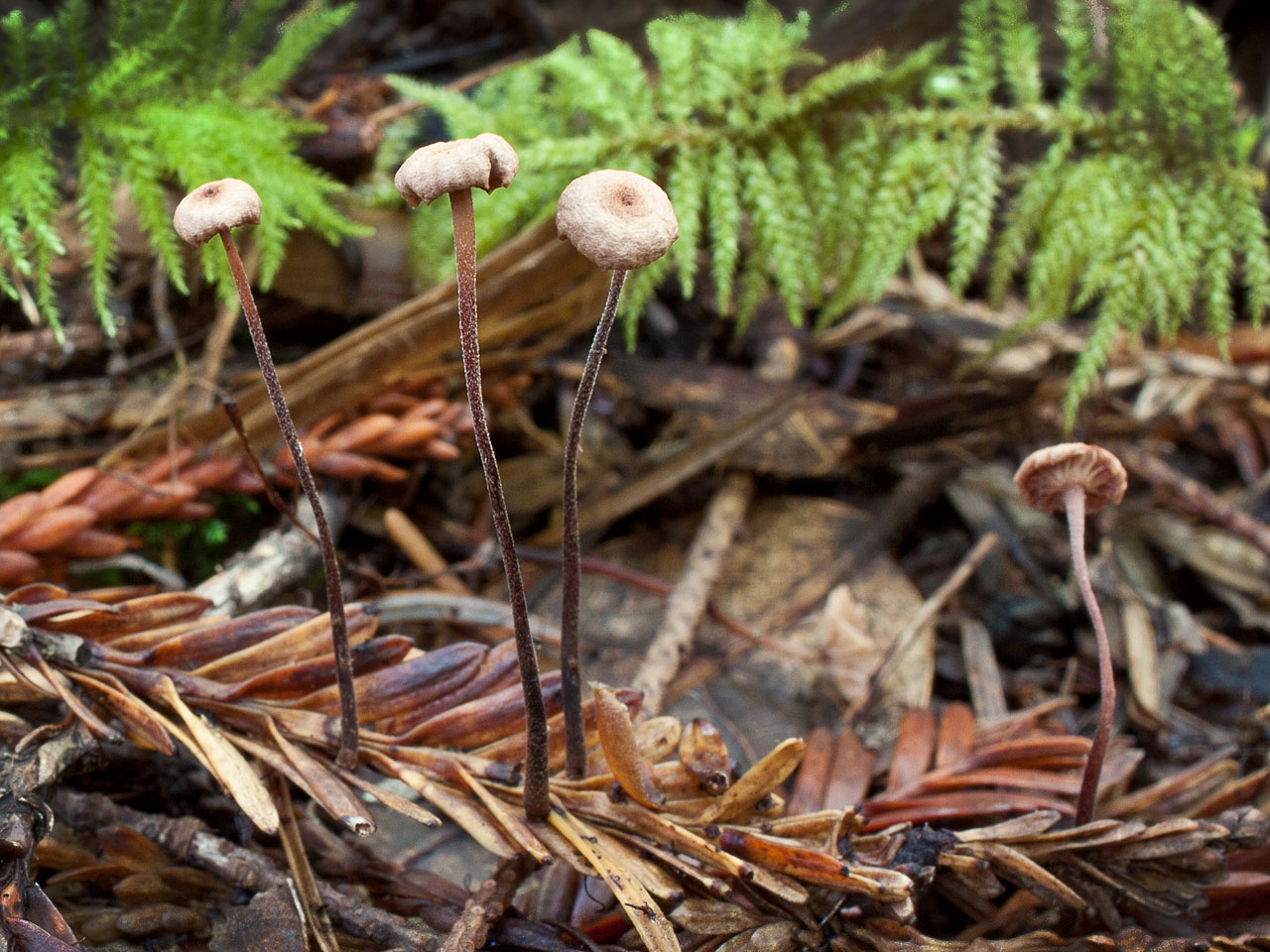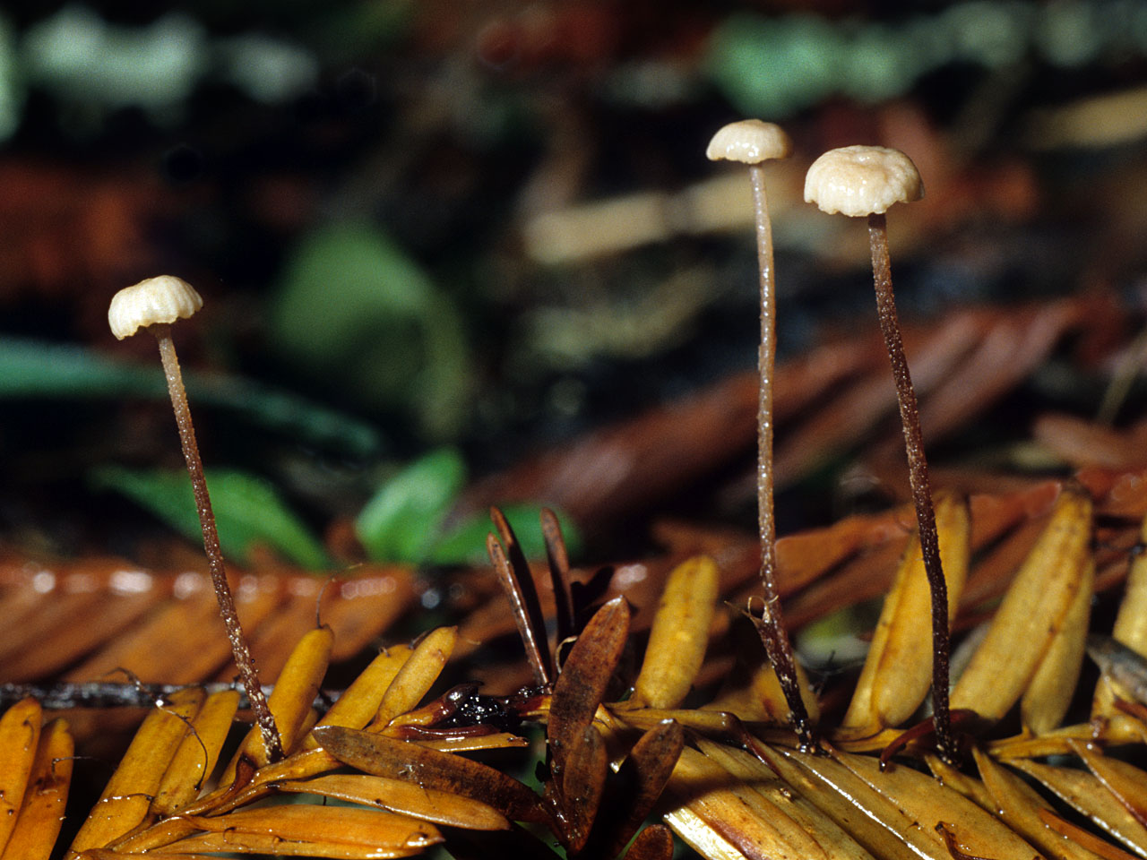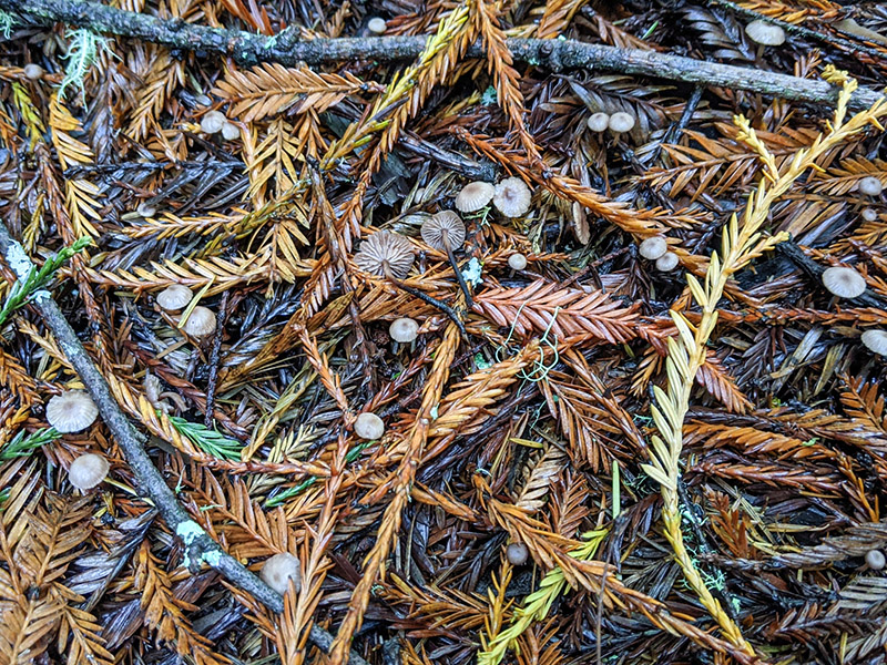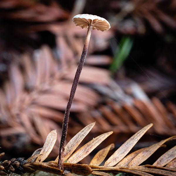 Synonyms: Micromphale sequoiae Desjardin; Gymnopus sequoiae (Desjardin) R.H. Petersen