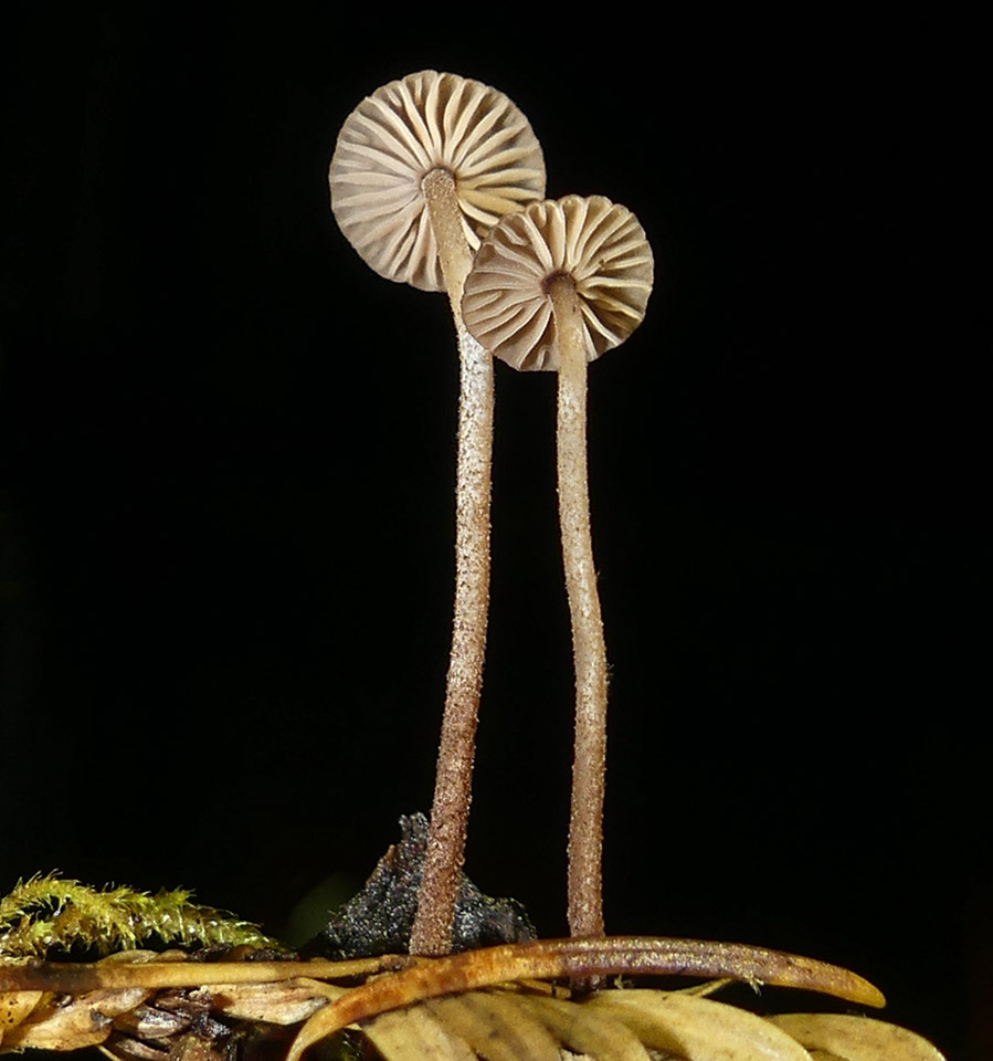 Oliveira, J.J.S., Vargas-Isla, R., Cabral, T.S., Rodrigues, D.P. & Ishikawa, N.K. (2019). Progress on the phylogeny of the Omphalotaceae: Gymnopus s. str., Marasmiellus s. str., Paragymnopus gen. nov. and Pusillomyces gen. nov. Mycological Progress 18(5): 713-739.
