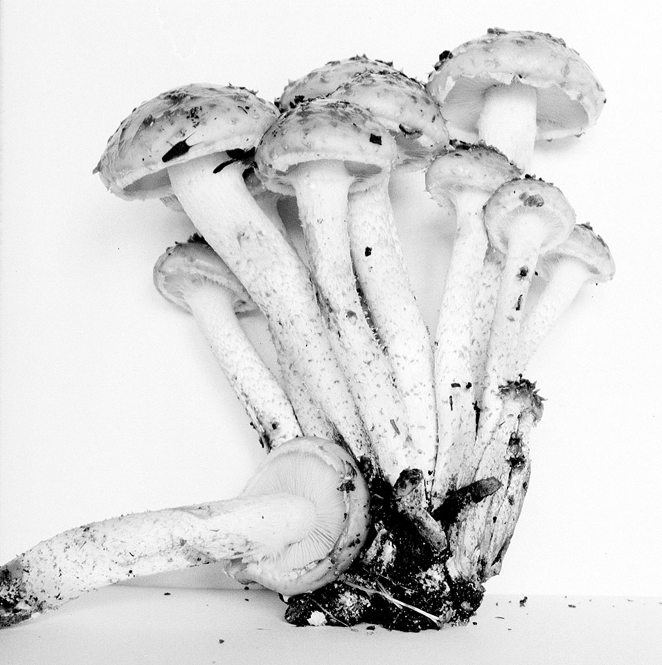 Stipe 8-12 cm long, 9-15 mm thick, solid, equal to a slightly enlarged base, silky-pruinose to glabrous above the veil line and more densely scaly as one progresses down from the line, the scales fibrillose and dry, veil leaving an evanescent zone near apex (never a distinct annulus), ground color yellowish over all and not distinctly darker over basal area.